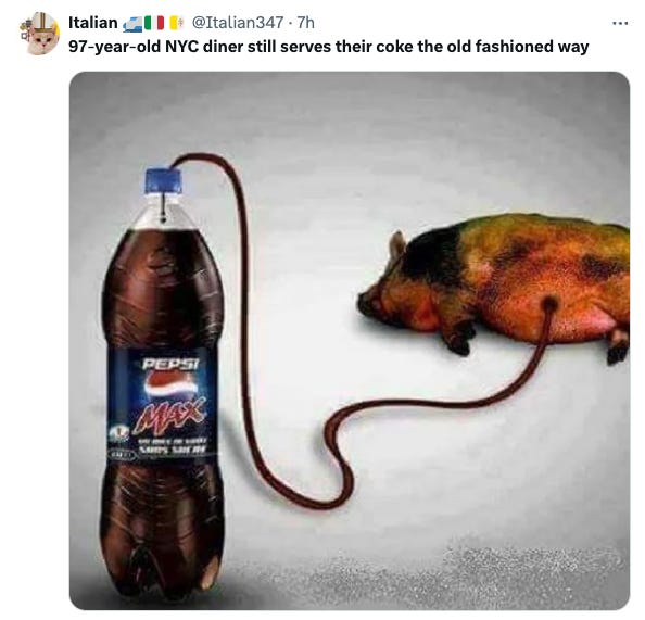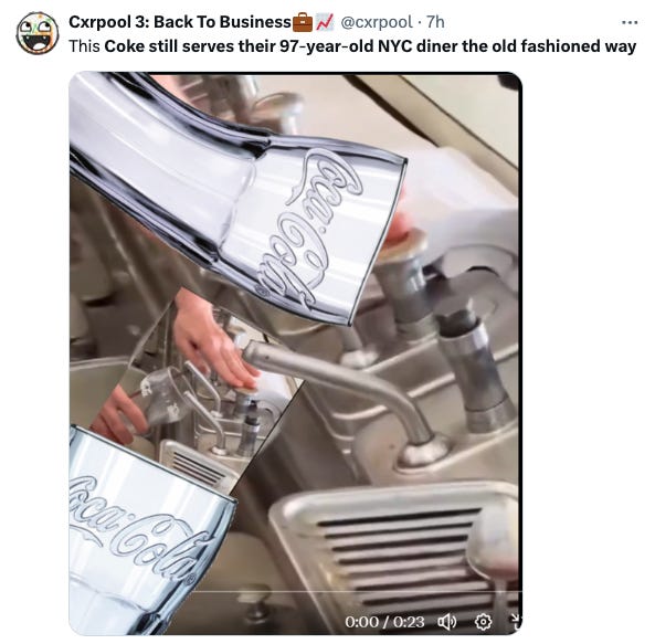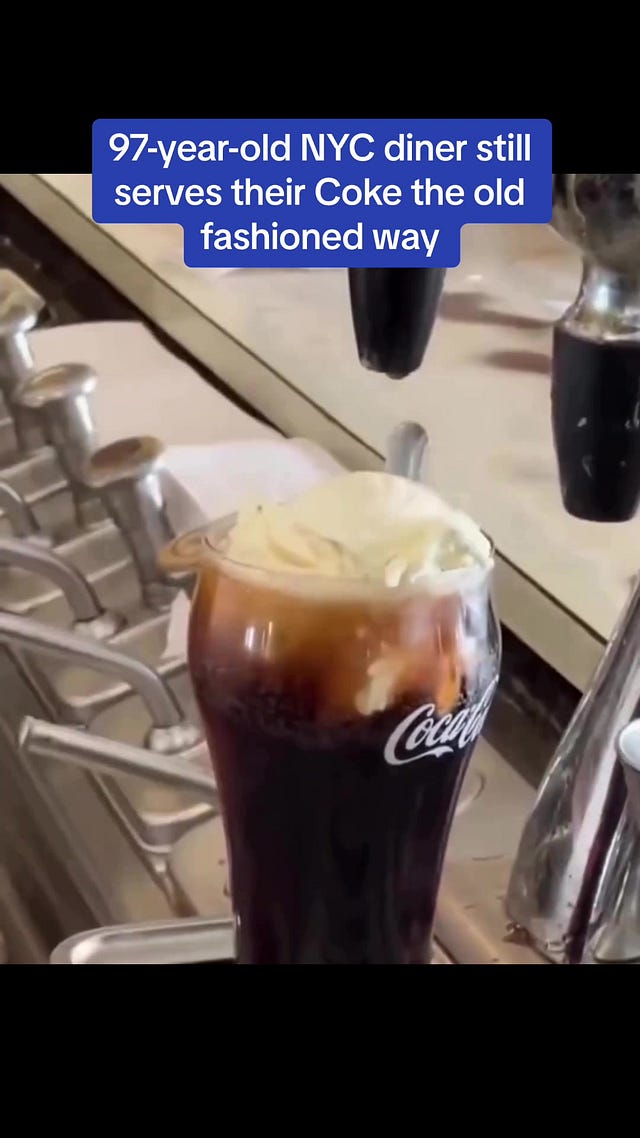 Hay como mil videos repetidos en tiktok sobre un sitio que aún sirve cocacola como hace 100 años. En particular `97-year-old NYC diner still serves their coke the old fashioned way`.