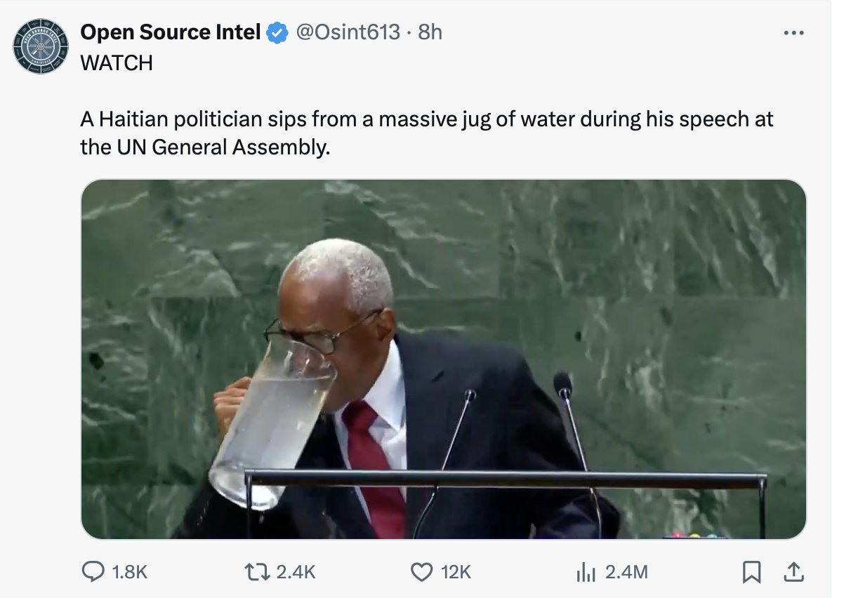 No es un meme pero estoy obsesionado con el haitiano en la ONU que bebió directo de la jarra.