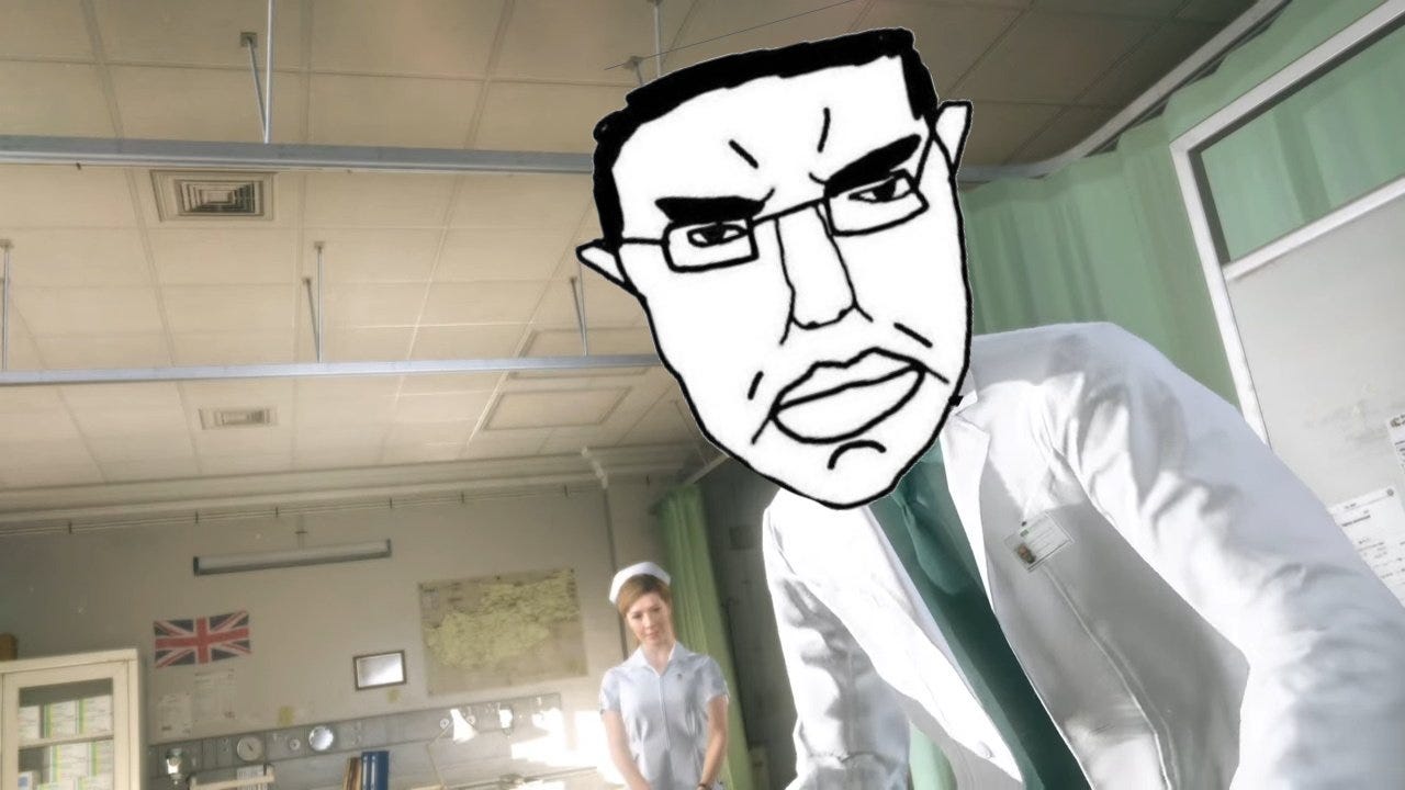 Esta última es una burla y referencia a MGSV: despiertas, un doctor te dice que has estado en coma por 9 años y que han pasado un montón de vainas. El chiste es que en realidad no pasó nada.
