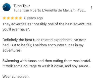 No me considero un experto en atunes pero una vez nadé con ellos en el Tuna Tour del Puerto L’Ametlla de Mar donde dejé este review: