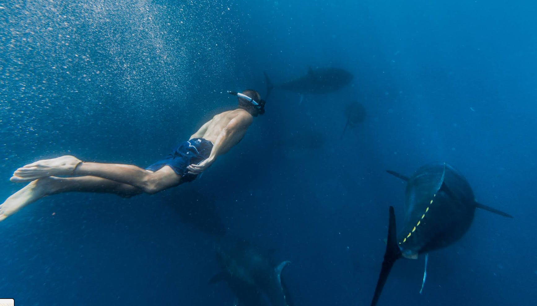 Bueno, el punto es que luego te metes al agua junto a los atunes como este señor.