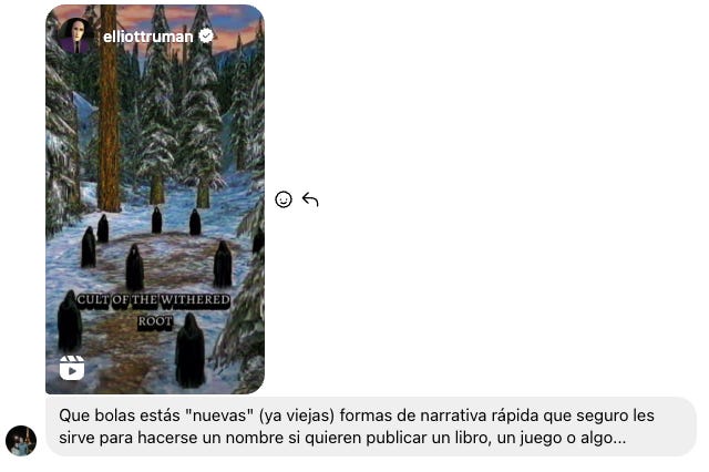 En el viejo internet muchos creadores utilizaron sus plataformas para montar compañías, hacer películas, escribir libros y construir carreras artísticas. El ejemplo más famoso es que Justin Bieber empezó haciendo videos de Youtube y luego lo apadrinó Usher. Otro ejemplo es Hammerspace, cuando empecé mi meta era hacer un podcast mayormente sobre cine y eventualmente utilizar mi audiencia para escribir un libro o montar una película. Esto último lo estoy haciendo en la medida de lo posible pero no tengo muy claro que haya un verdero overlap entre la gente que lee mis opiniones y la gente que leerá mis ficciones.