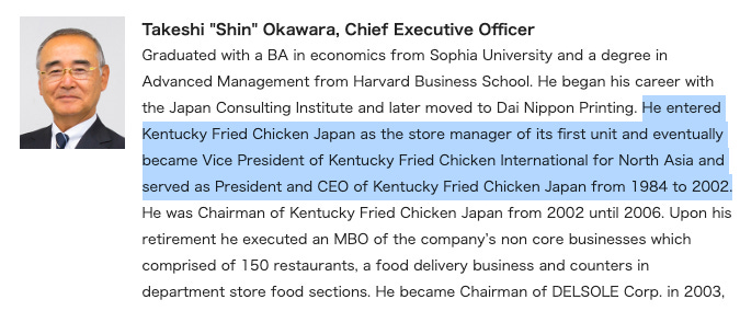 ¿Qué es de la vida de Takeshi? Aquel gerente de KFC que se le ocurrió la idea. Pues el hijo de la gran puta trabajó 32 años ahí hasta que se volvió el mismísimo CEO de KFC, el KFCC (kentucky fried chicken chief).