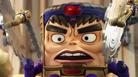 Mientras que el resto de las series de Marvel pareciera que tiene a los escritores contratados a medio tiempo, Modok está lleno de chistes, referencias y tiene una trama muy personal y una deconstrucción a la vida de un villano de Marvel que por culpa del tono de las películas no hubiera llegado a la pantalla si no fuera con esta presentación.
