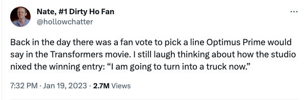 Muchas gracias por su apoyo en el 2023. Este proyecto no tiende a crecer mucho lol, de hecho pasamos de 900 subscriptores a 1272 en este tiempo, números humildes pero poderosos. Al menos 10 de ustedes cooperarían en un intento de sicariato. Estoy seguro. Es más, si me ayudarías en un sicariato comenten “damelahora” después de estas 5 docenas de JPGs o pongan qué meme de estos les gustó más y si hubo algún snubbed.